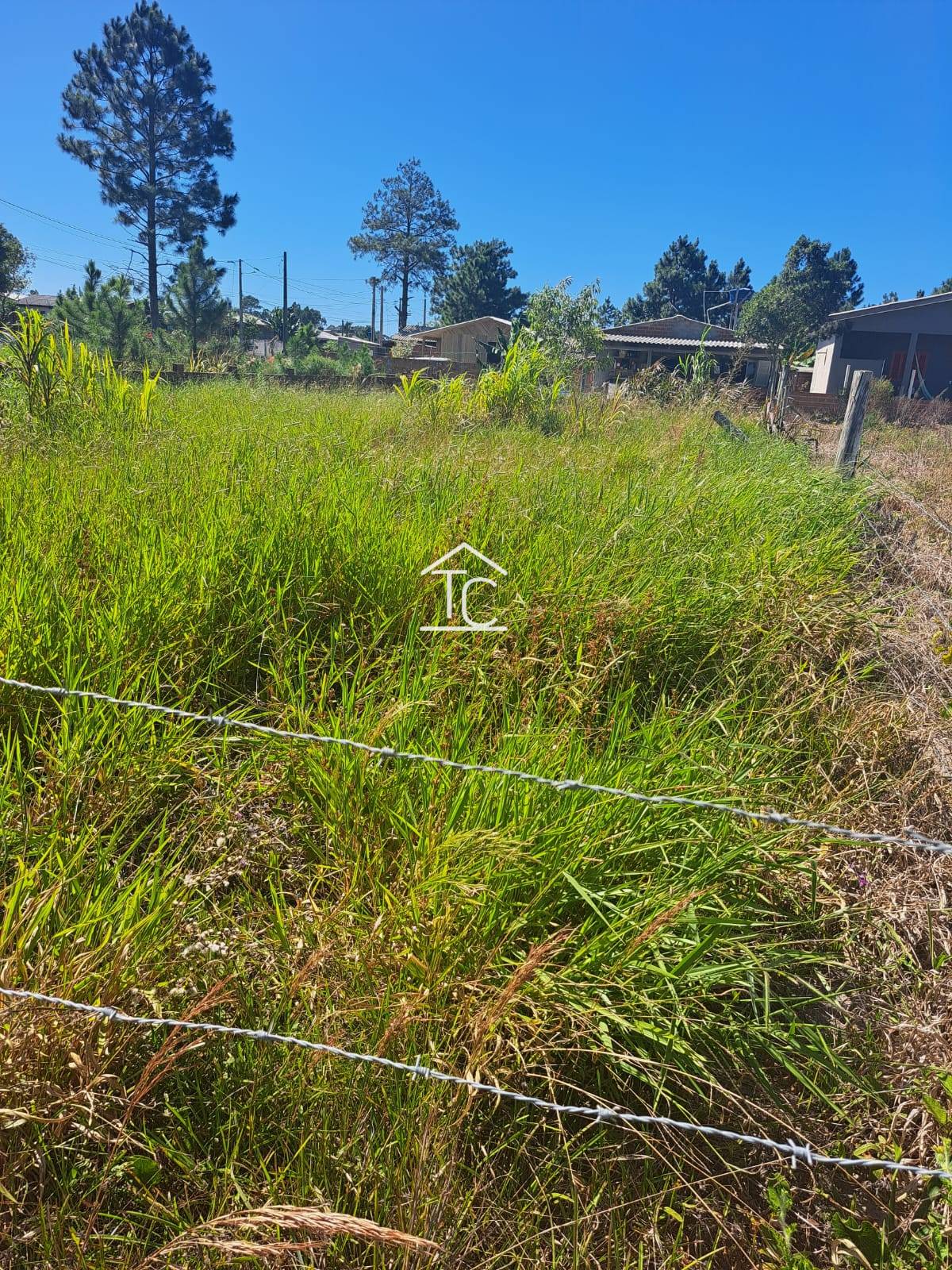 Terreno plano, cercado, local de muitas residências fixas.